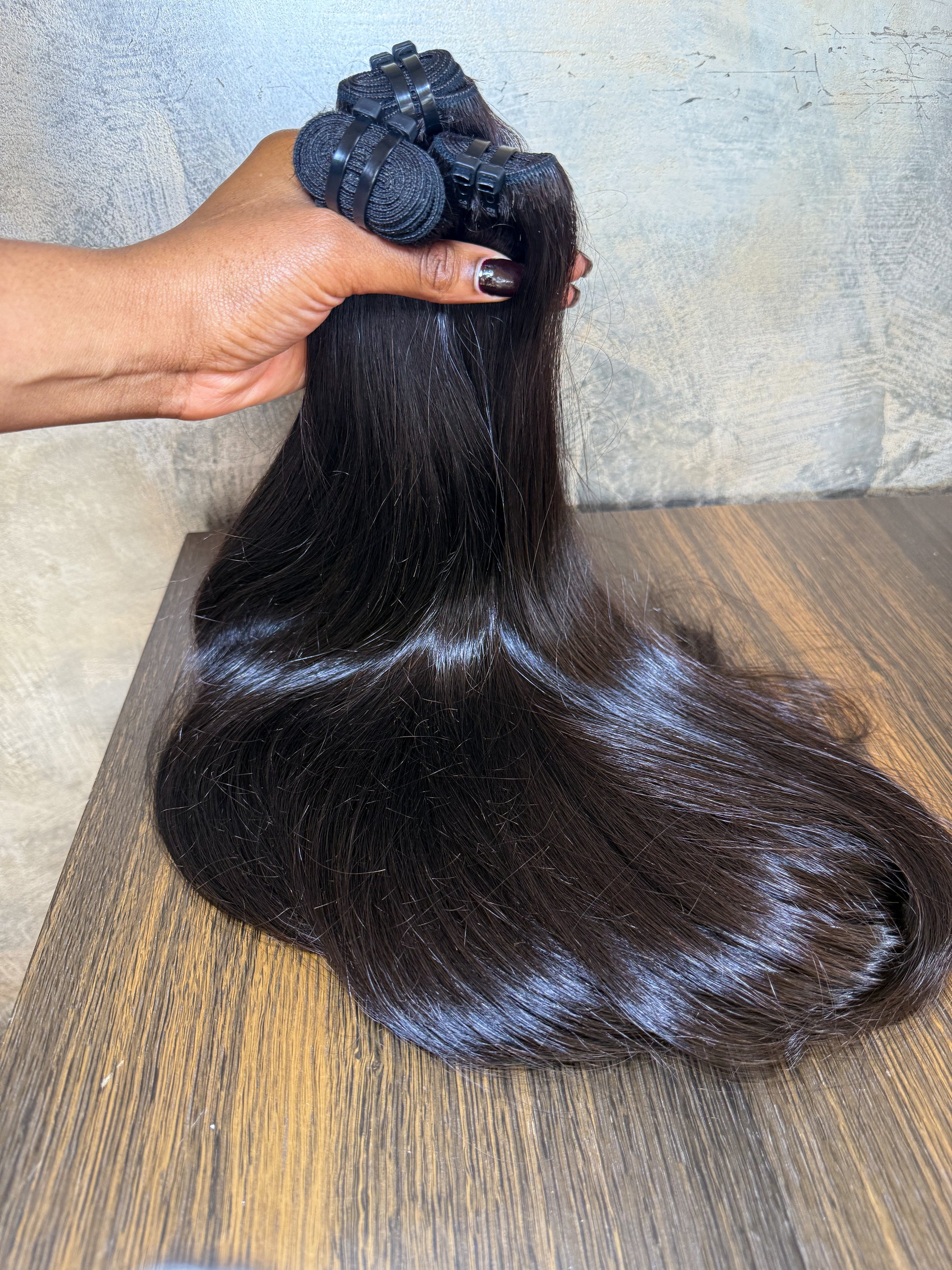 Nos extensions sont conçues à partir de cheveux bruts sélectionnés avec soin pour leur douceur et brillance. Idéal pour les tissages ou perruques sur mesure, ce bundle noir naturel garde sa souplesse lavage après lavage.